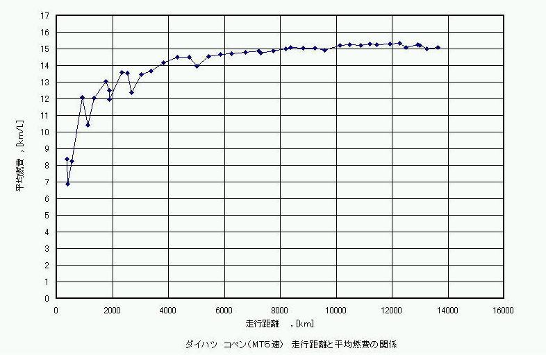 2007年7月の段階で、平均燃費(車としての生涯燃費)は15.1[km/L]です。