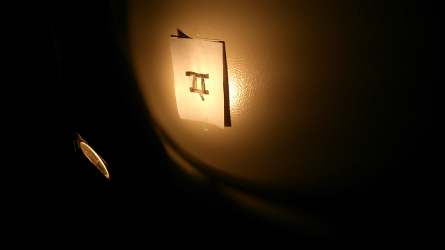被写体は”立”の字ですがレンズで上下反転するので、被写体の方を上下ひっくり返しています。