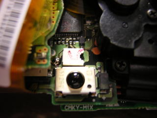 この小さな部品が、位置的にみて、レンズ蓋開閉スイッチのようです。