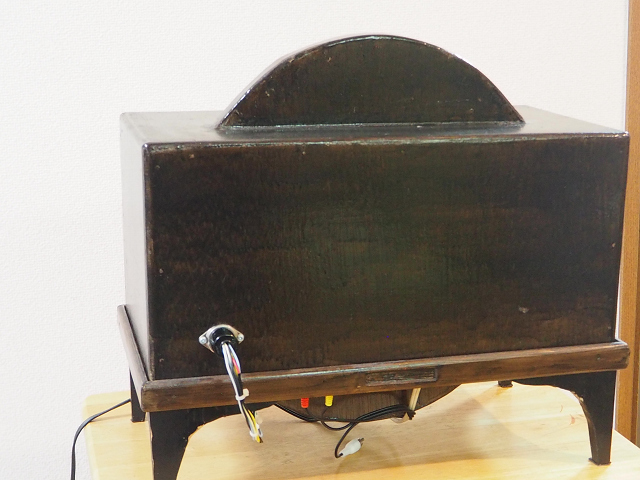大きめの四角い箱にニポー円板を含めた全体を収める方が良いと思われますが、ベアードはニポー円板をテレビの象徴と思っていたのか、このような形状になっています。このため、製造コストは増大したと思われます。