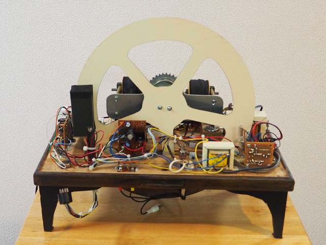 図鑑などの写真数枚から「こんな感じだろう」という想像で製作しました。最初はモーターで円板を回すだけ、同期させる仕組みなどなく、単にモーターで円板を